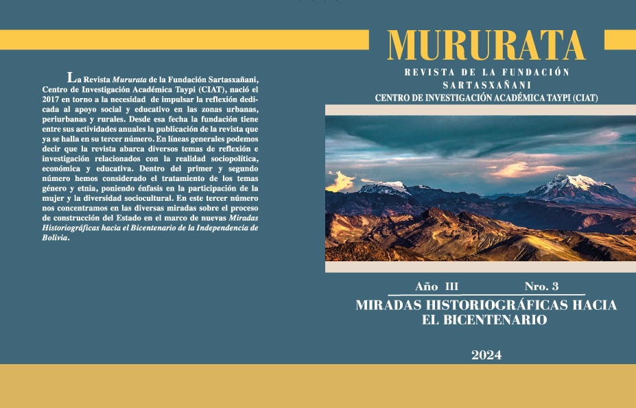 La nueva revista Mururata nace como una necesidad que tiene la Fundación Sartasxañani "CIAT"de impulsar la reflexión sobre temas educativos y el ejercicio de derechos de género largamente conculcados y desconocidos en Bolivia. Hoy presentamos el número uno bajo el título: Mujeres en la Historia Andina, en esta edición presentamos varios artículos referidos a esta temática de vigente actualidad, el rol de la mujer en la sociedad boliviana, bajo miradas críticas desde la historiografía, la educación, la producción artesanal y artística y toda su posible participación política y socioeconómica.